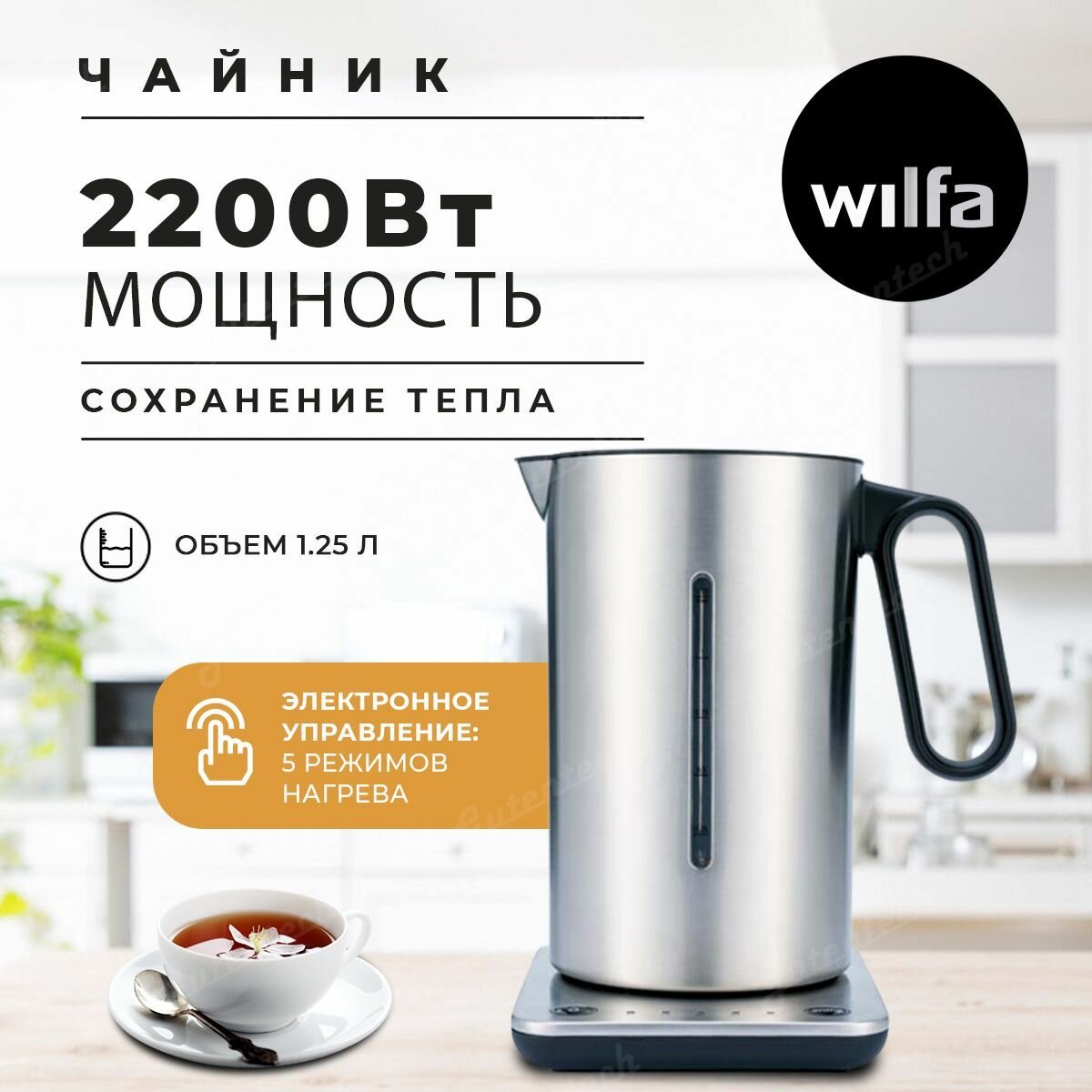 Чайник электрический WILFA WSDK-2000 S, 2200Вт, нержавеющая сталь