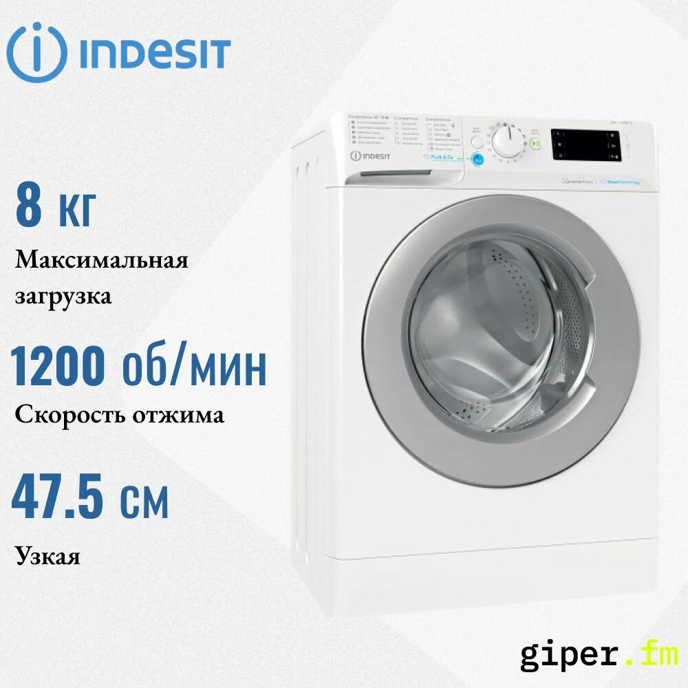 Стиральная машина узкая Indesit Innex BWSE 81293X WSV RU, с фронтальной загрузкой, 8кг, 1200обмин, инверторная