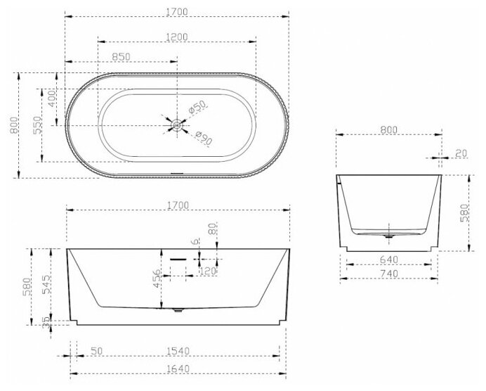 Акриловая ванна Abber AB9325-1.7 170x80 см, отдельностоящая, цвет белый