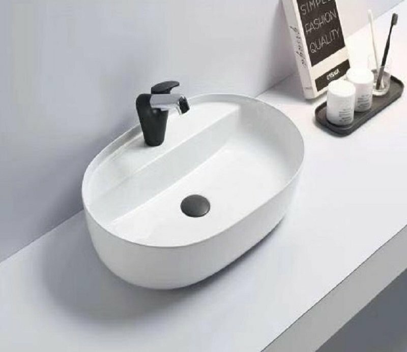 Раковина для ванной, CeramaLux D1346, накладная, овальная, с антигрязевым покрытием, с отверстием под смеситель. Гарантия 10 лет.