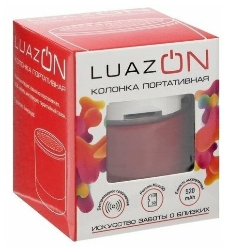 Портативная колонка LuazON, microSD, 520 мАч, 3 Вт, красная Luazon Home 4310442 .