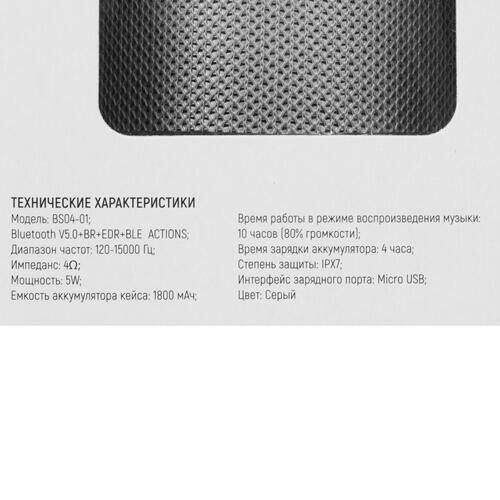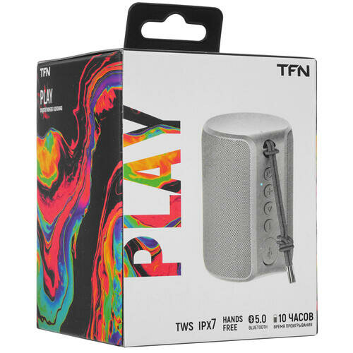 Портативная колонка TFN Play, 5 Вт, microUSB, IPX7, 1800 мАч, серая 7675024