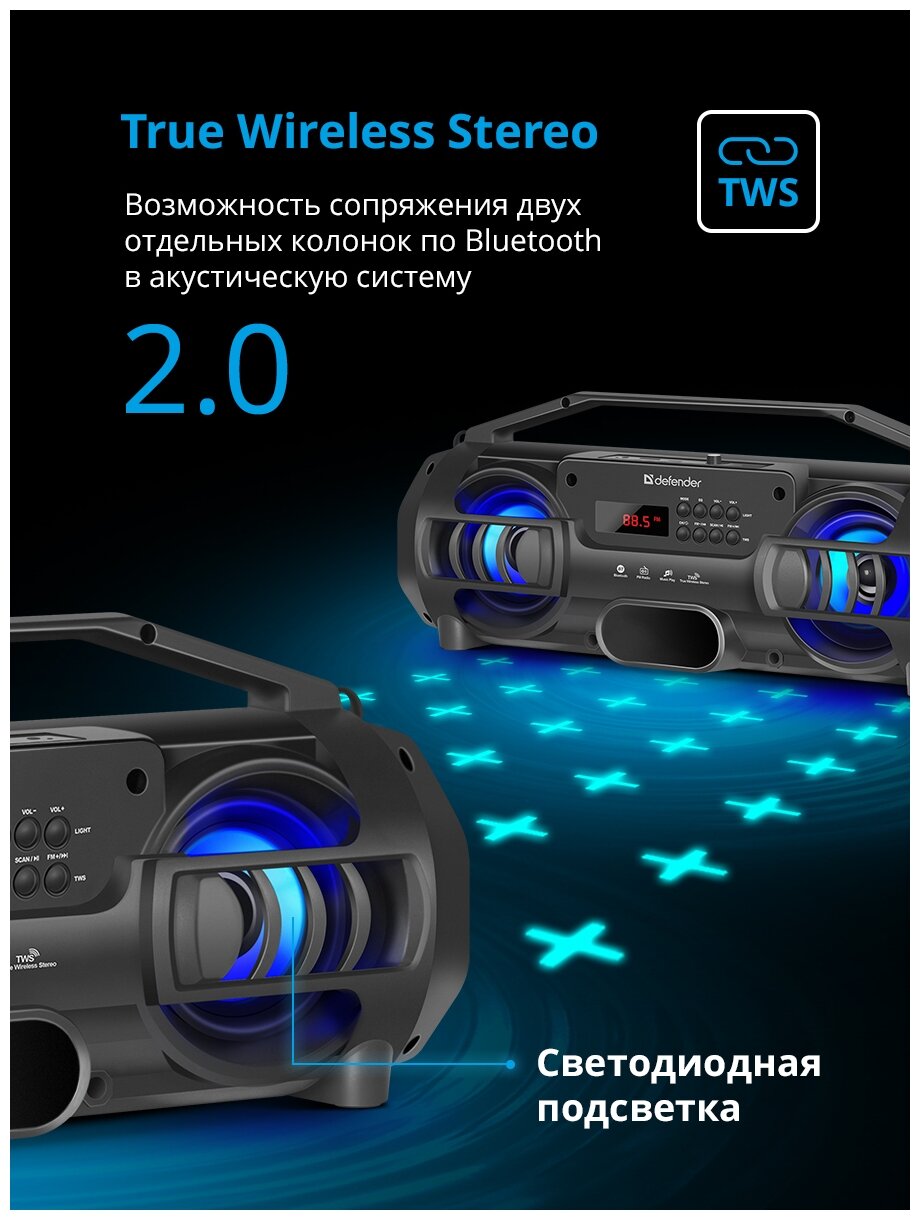 Портативная акустика Defender G104 12Вт, Light/BT/FM/TF/USB/TWS (65104) .