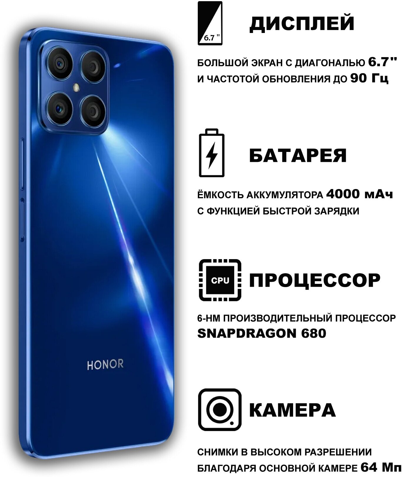 Смартфон HONOR X8 6/128 ГБ RU, cиний океан