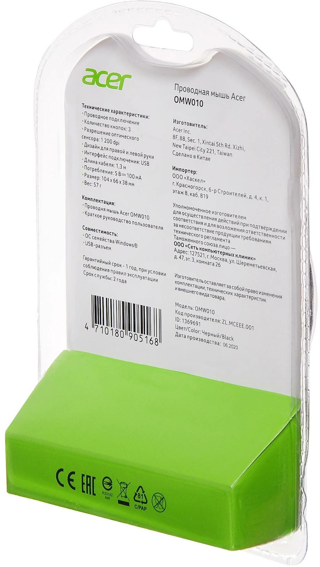 Мышь компьютерная Acer OMW010, черный