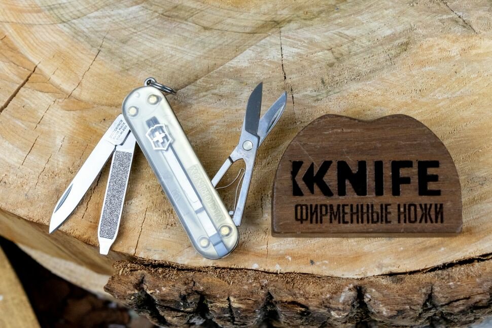 Нож-брелок VICTORINOX Classic SD Colors "Mystical Morning", 58 мм, 7 функций, полупрозрачный серый