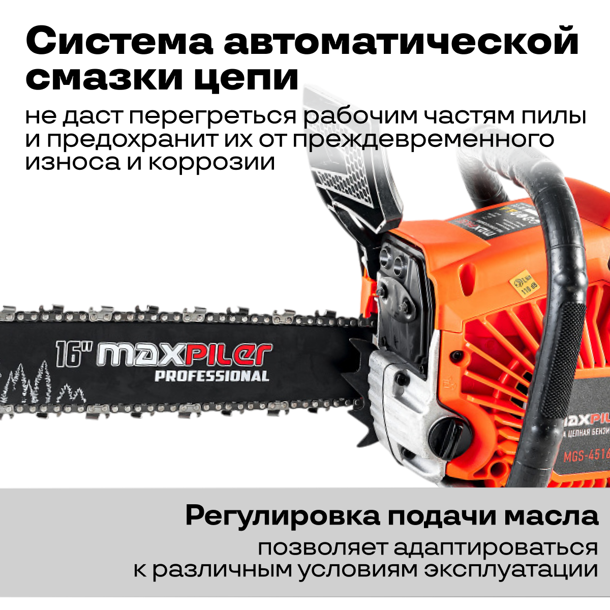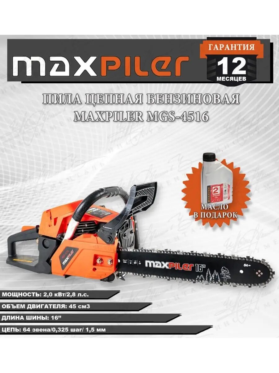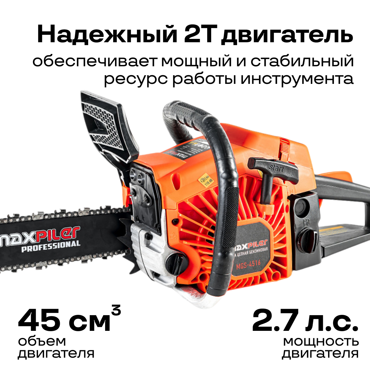Бензопила MAXPILER MGS-4516 (400мм/16", 2кВт/2 7л. с, 45 см/куб)