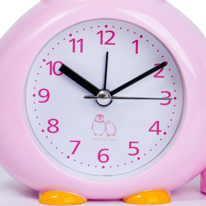 Купить Будильник "Пингвинёнок", с карандашницей, дискретный ход, d-6 см, 12 х 14.5 см, розовый