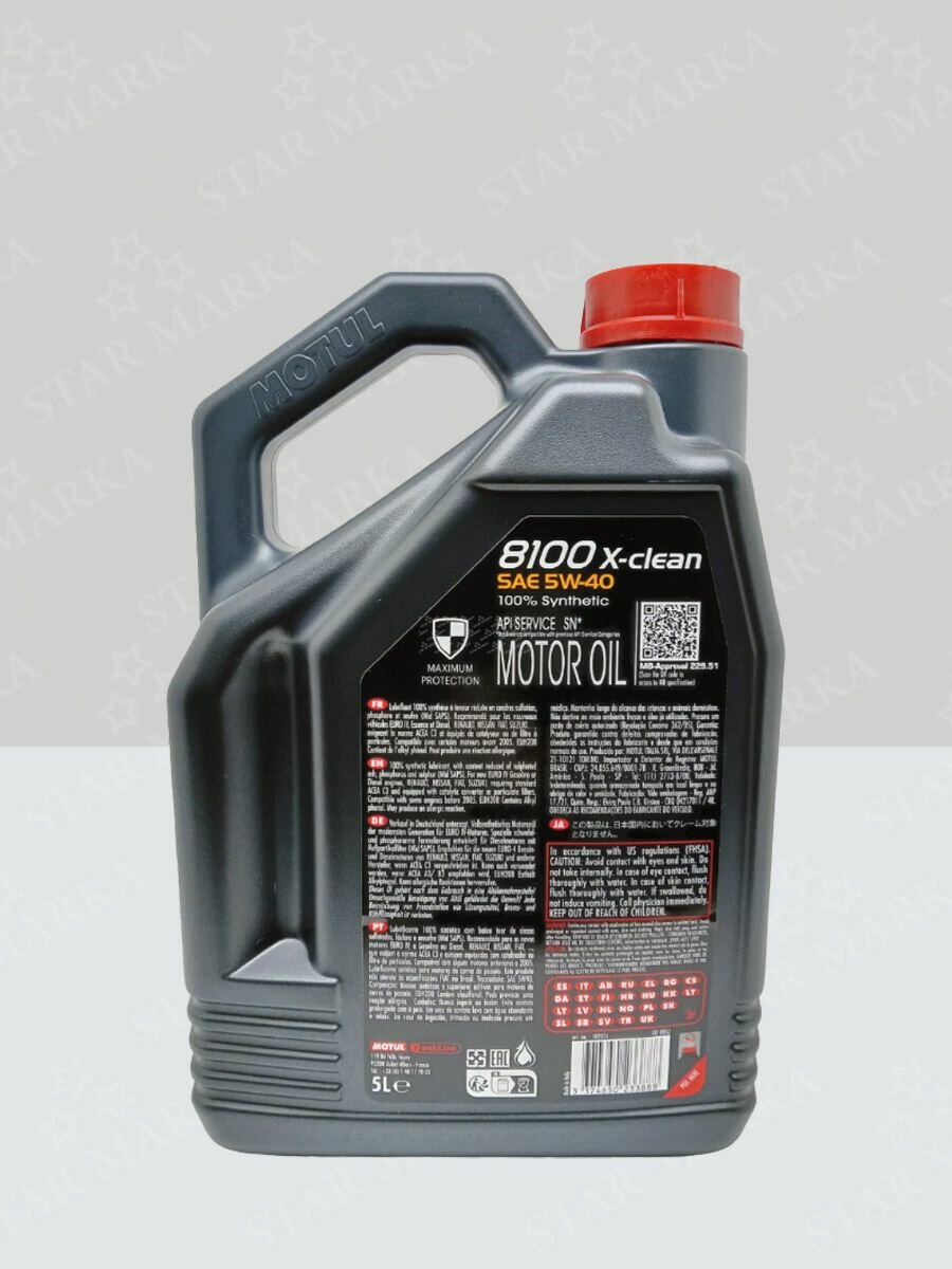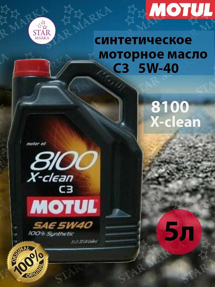 Масло моторное MOTUL 8100 X-clean 5w40 синтетическое, API SN, ACEA C3, универсальное, 5л, арт. 3888