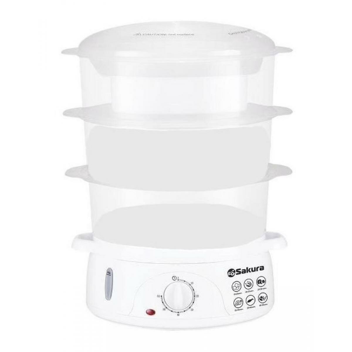 Пароварка Sakura SA-7214 таймер. 3 яруса. 800Вт