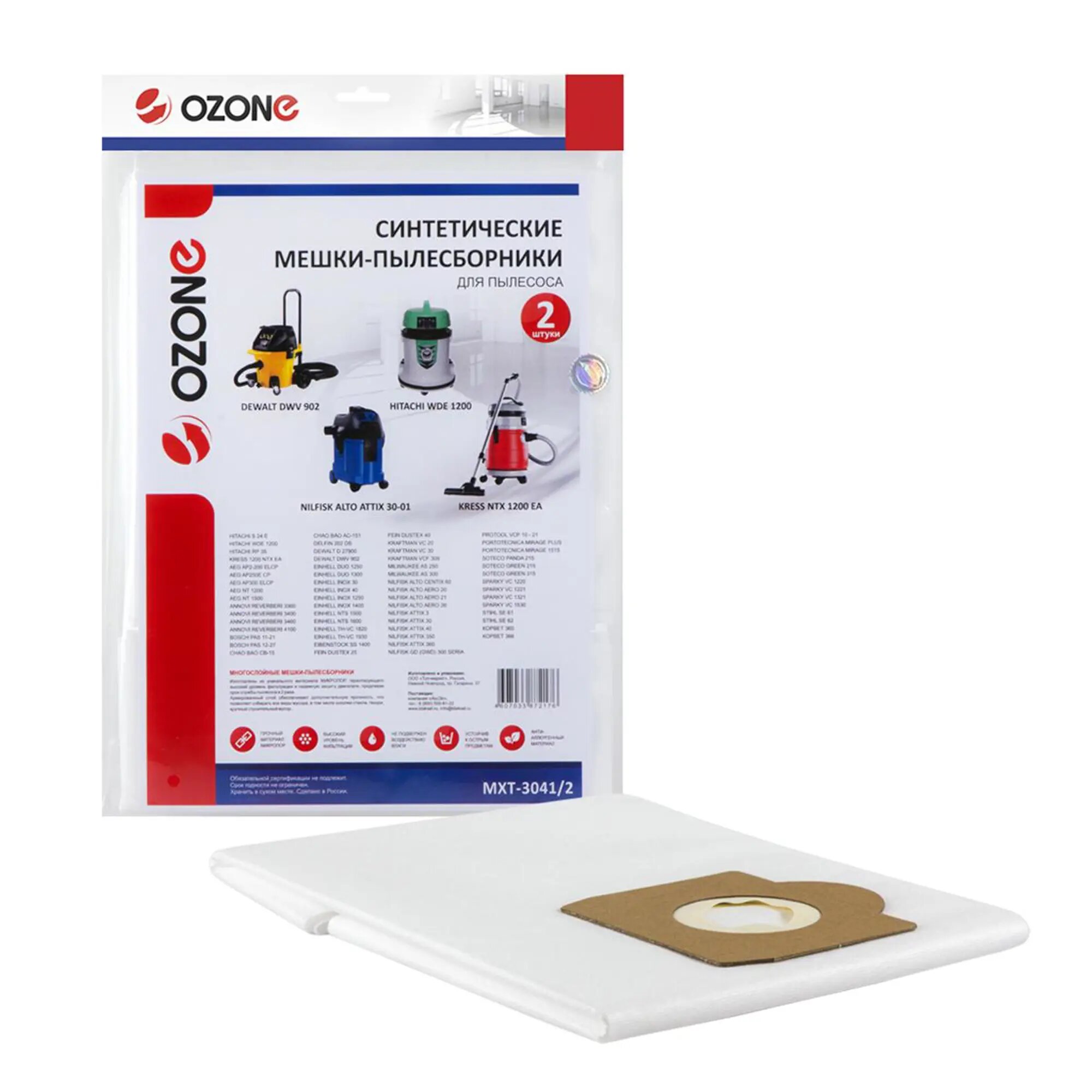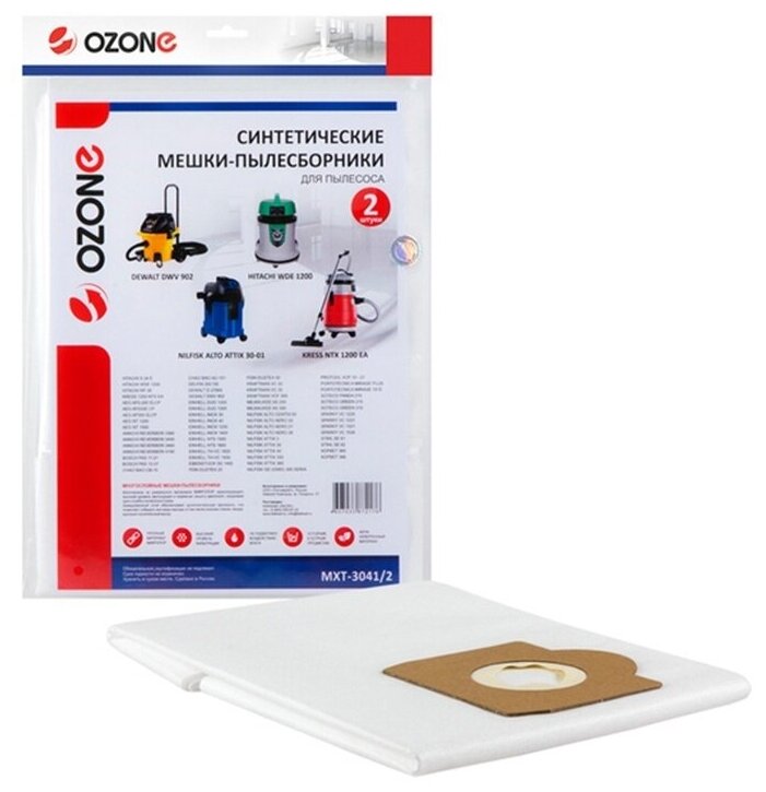 Мешки-пылесборники Ozone MXT-3041/2 2шт для Kress 1200 NTX EA/Aeg/Bosch/Dewalt/Hitachi/Nilfisk/Portotecnica/Soteco/Sparky