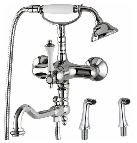 MARGOT-PBV2-01-Bi Смеситель на борт ванны с поворотным изливом и ручным душем, хром, ручка белая