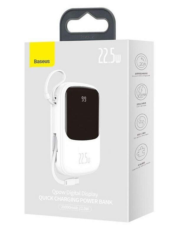 Внешний аккумулятор Baseus Qpow Digital Display Quick Charging Power Bank 20000mAh 22.5W (With Type-C Cable) White (PPQD-I02)