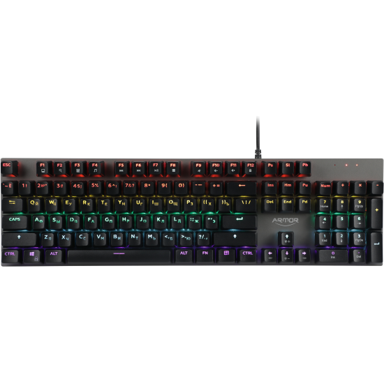 CBR KB 883 Armor, Клавиатура механическая игровая, USB, 104 кл., свитчи Huano Red, Anti-Ghosting, N-key rollover, Rainbow LED, 60 млн. наж., прорезин. ножки, корпус металл, длина каб. 1,8 м
