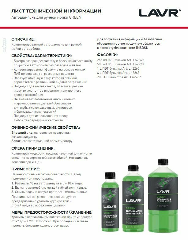 Автошампунь Green, LAVR 1 л