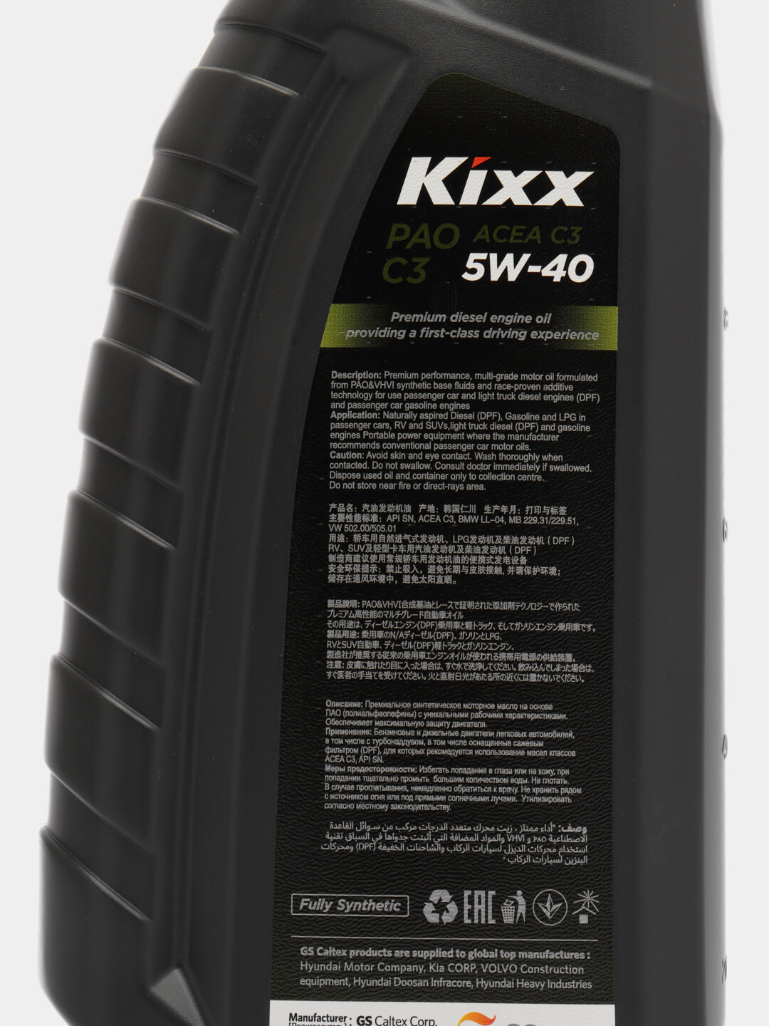 Моторное масло KIXX 5W-40 PAO C3 Синтетическое 1 л