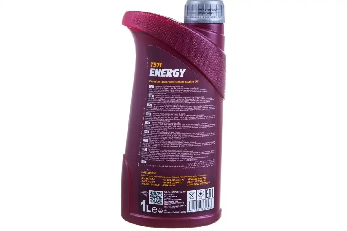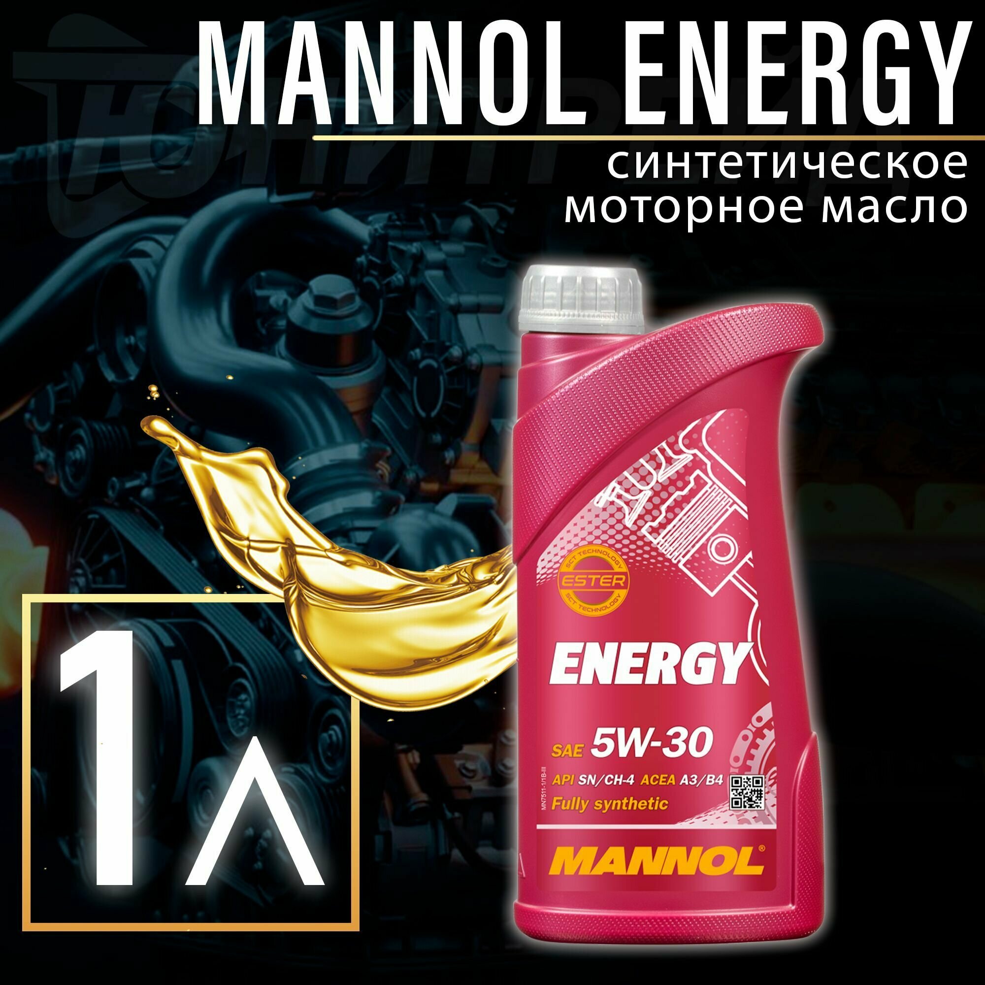 Масло Mannol Energy 5W30 синт. 7511 (1 л) API SN, ACEA A3/B4, FORD WSS-M2C913-B; VW 502.00/505.00; MB 229.3
