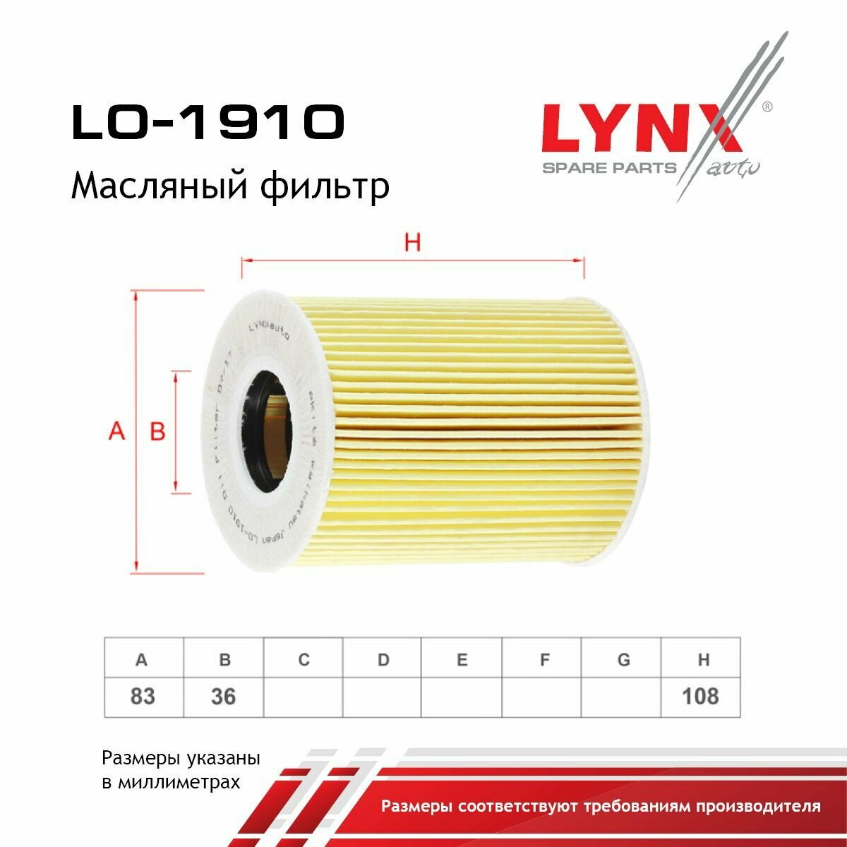 LO1910 LYNXAUTO Фильтр масляный (вставка)