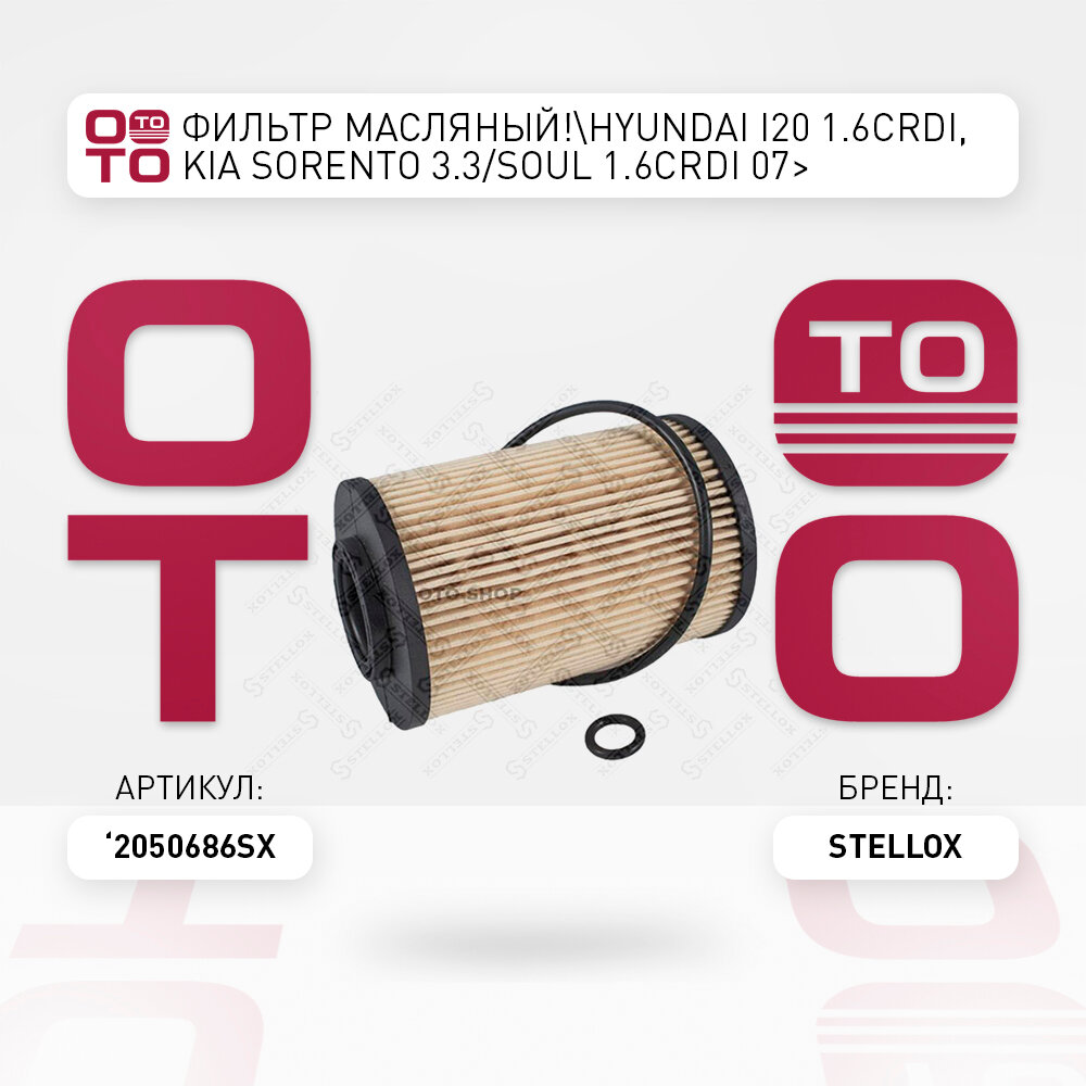 20-50686-sx_фильтр масляный!hyundai i20 1.6crdi, kia sorento 3.3soul 1.6crdi 07>, STELLOX 2050686SX (1 шт.)