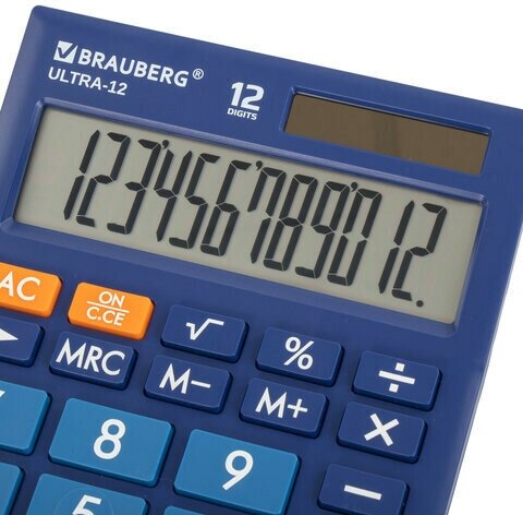 Купить Калькулятор настольный BRAUBERG ULTRA-12-BU (192x143мм), 12 разрядов, дв.питание, синий, 250492