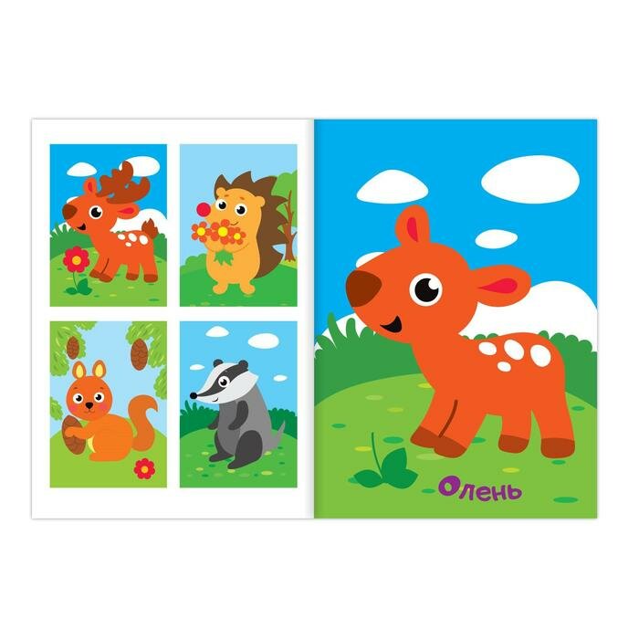 Аппликации наклейками «Лесные животные», 12 стр.