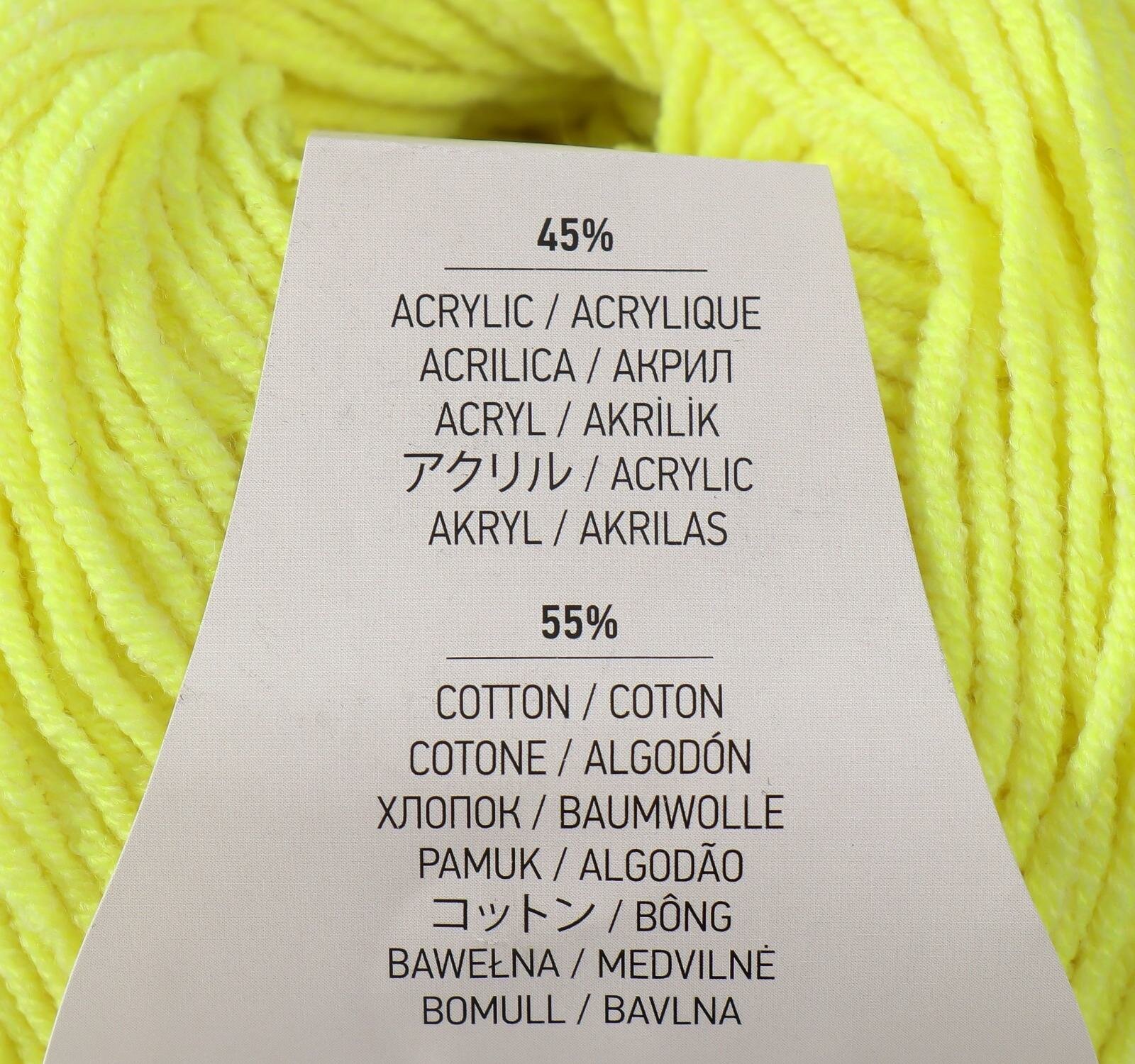 Пряжа "Jeans" 55% хлопок, 45% акрил 160м/50гр (58 лимон)./ В упаковке: 1