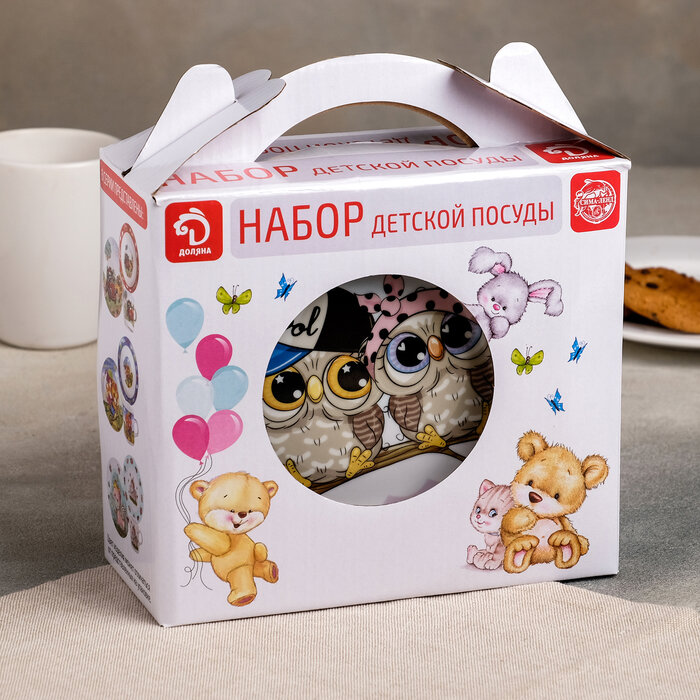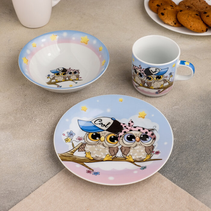 Купить Набор детской посуды Доляна «Совы тинейджеры», 3 предмета: кружка 230 мл, миска 400 мл, тарелка 18 см