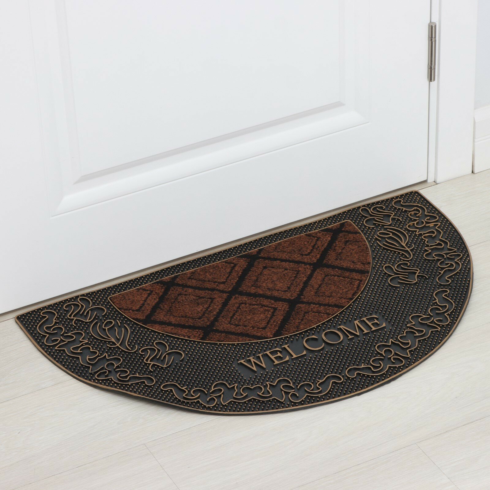 Купить Коврик придверный полукруглый Доляна «Welcome узорный», 48×78 см