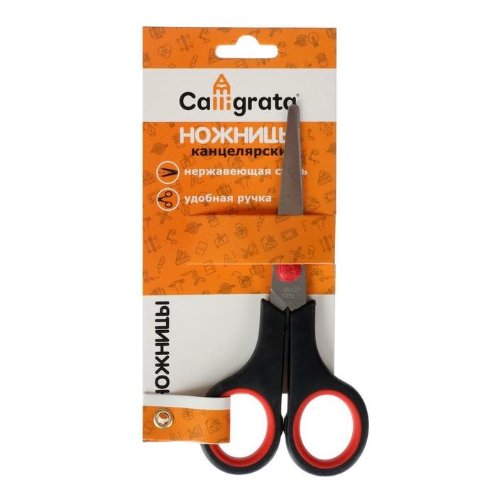Calligrata Ножницы, 13.5 см, "Стандарт", пластиковые ручки, европодвес интересное: