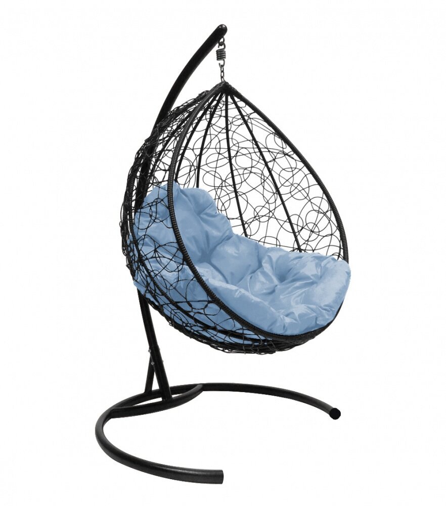 Подвесное кресло капля ротанг черное(без стойки), голубая подушка