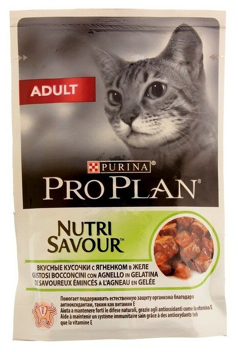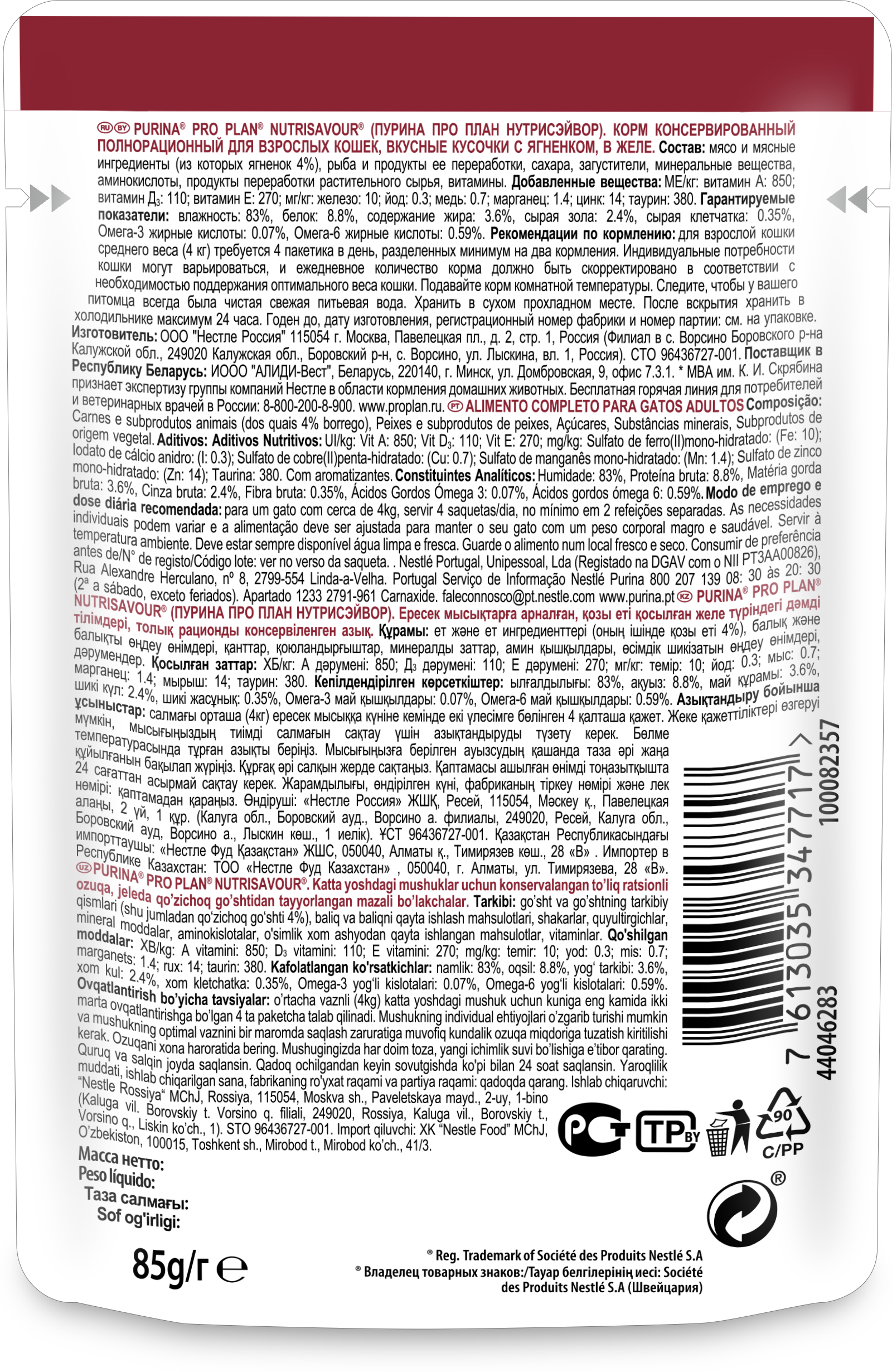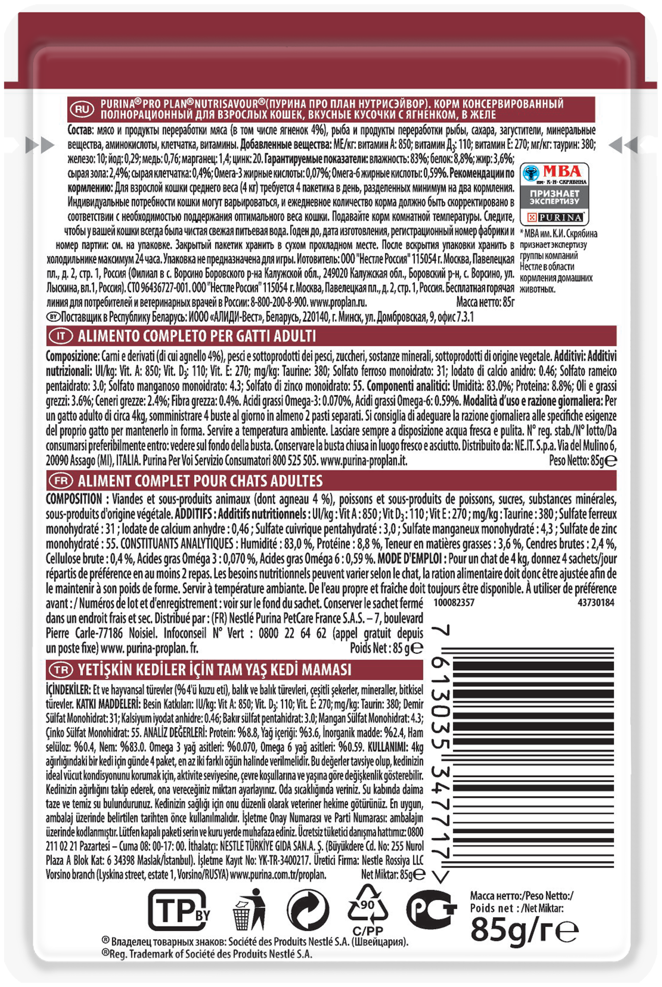 Влажный корм для взрослых кошек Pro Plan Nutrisavour, с ягненком 26 шт. х 85 г (кусочки в желе)