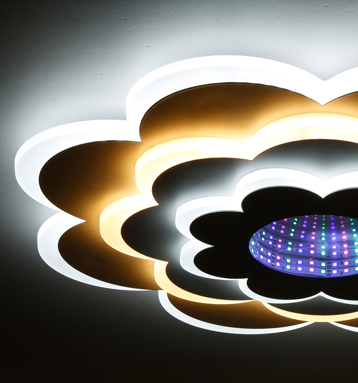 Люстра с пультом светодиодная потолочная 176W, 8 ламп, цветок, большая, белая, LEDCITY