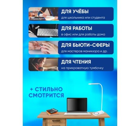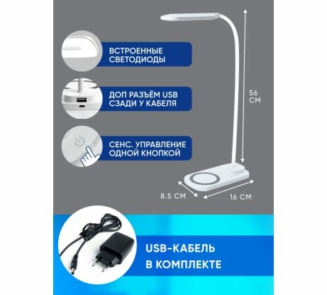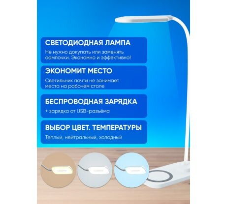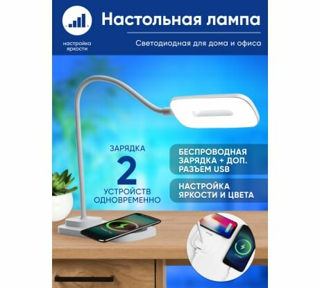 Офисная настольная лампа светодиодная диммируемая с выключателем и регулировкой цветовой температуры беспроводным ЗУ и USB-портом 41552 (Feron)