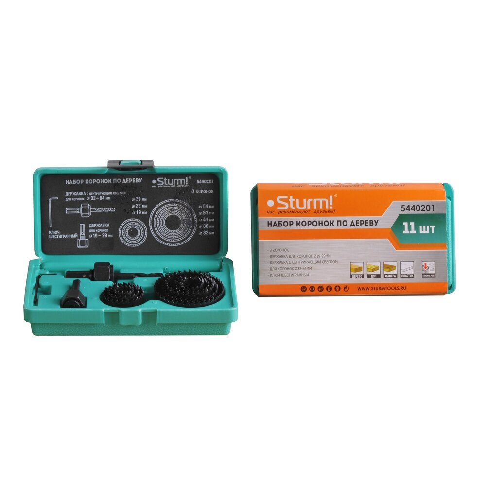 Набор коронок по дереву Sturm 5440201 /11 предм., D19,22,29,32,38,44,51,64мм /69254/