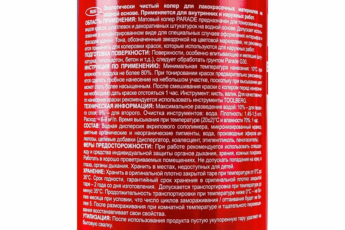 Паста колеровочная parade 0,25л 209 алый