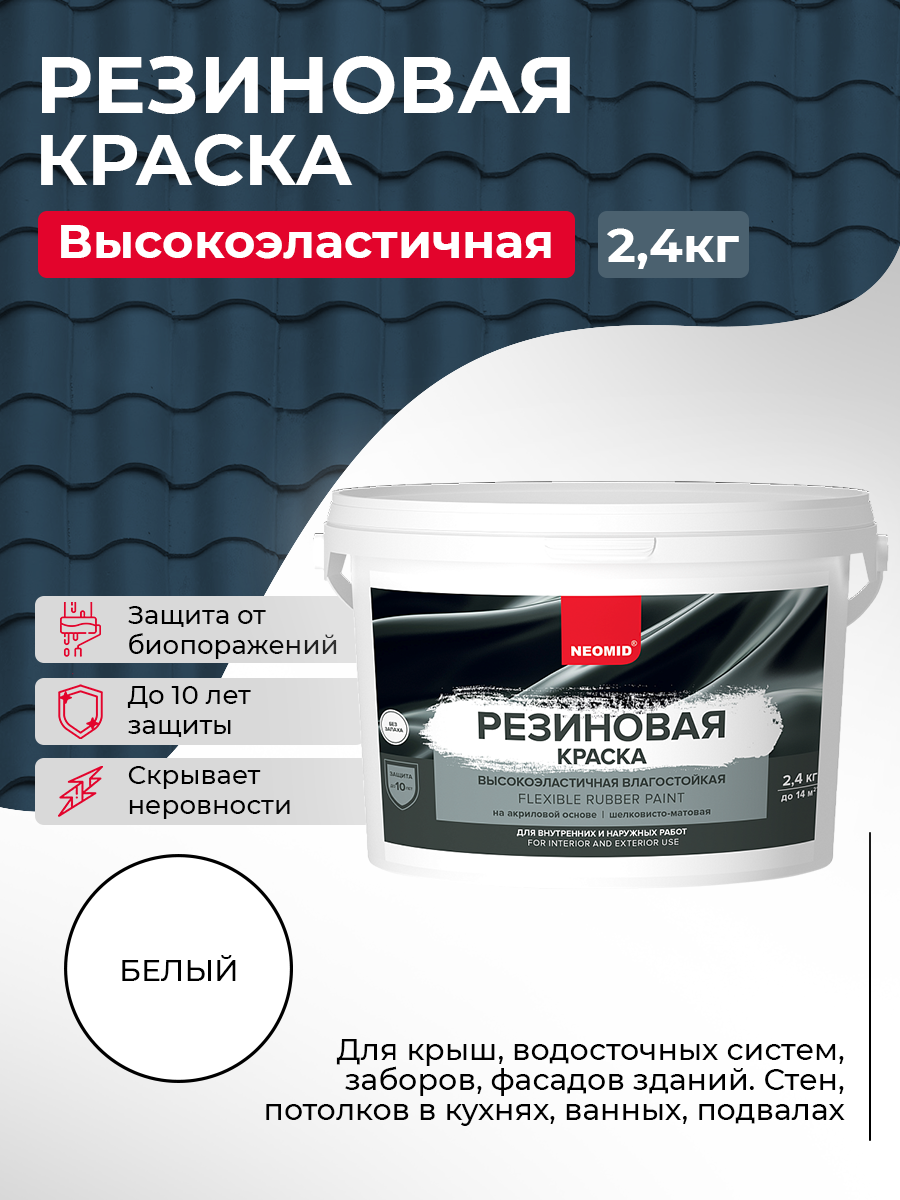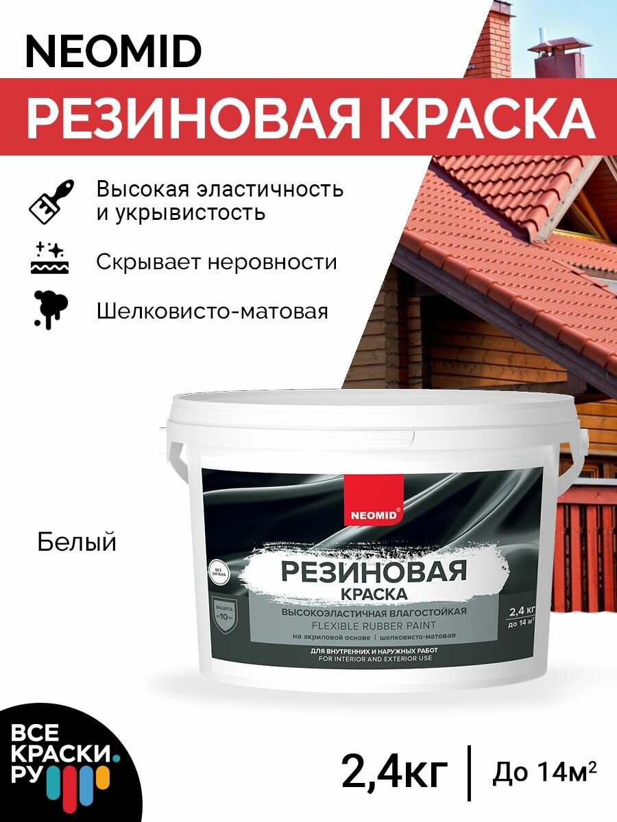 Резиновая краска NEOMID Белый RAL 9003 (2,4 кг) / Для фасадов, для стен и потолков в помещениях повышенной влажности