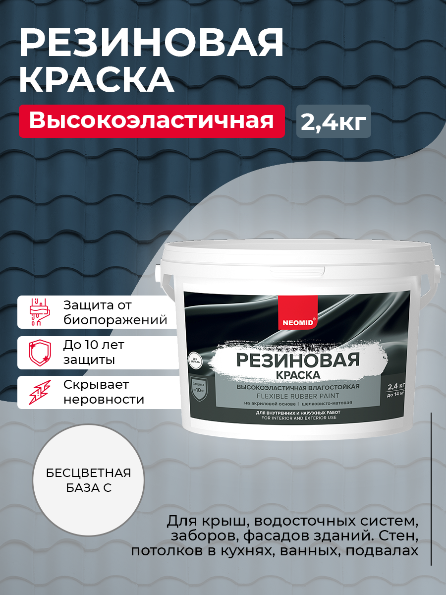 Резиновая краска NEOMID Белый (2,4 кг) / Краска для фасадов, стен и потолков в помещениях повышенной влажности