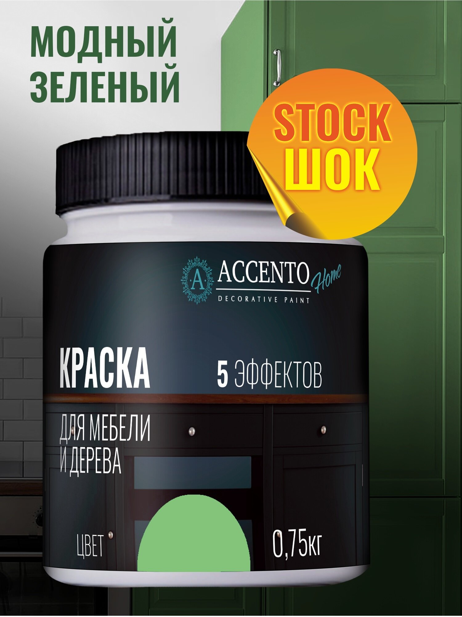 Краска для мебели и дерева акриловая полуматовая, для творчества и декора, цвет Зеленая паприка, 750г