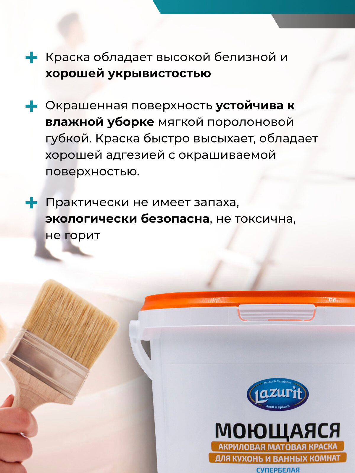 LAZURIT Моющаяся матовая краска для кухонь и ванн 1,5 кг