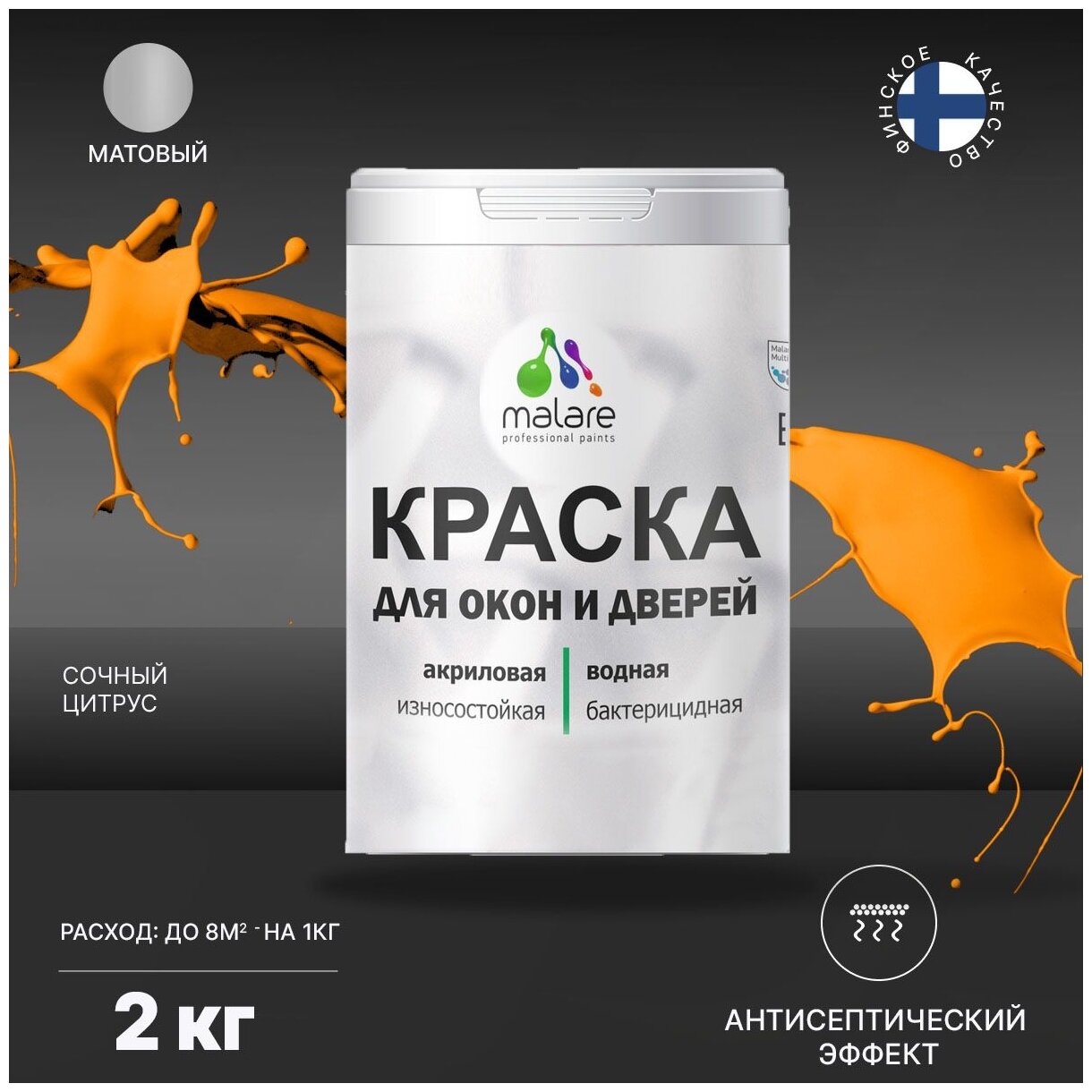 Купить Краска Malare для окон и дверей, оконных рам и межкомнатных дверей, по дереву, для пластика, матовая, сочный цитрус, 2 кг.