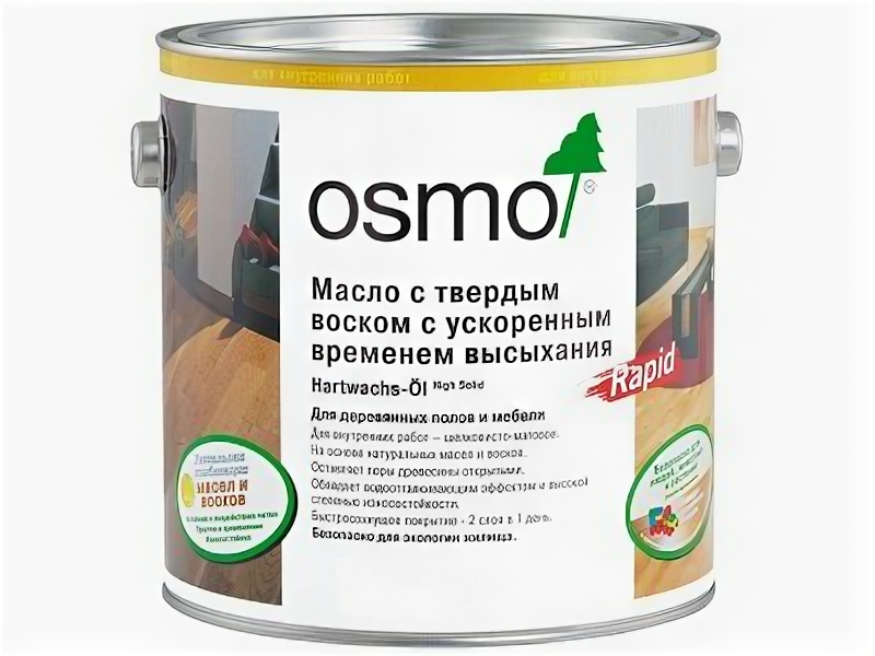 Купить OSMO Масло Осмо с ускоренным высыханием Osmo Hartwachs-Öl Rapid 0,75 л. 3232 Шелковисто-Матовое
