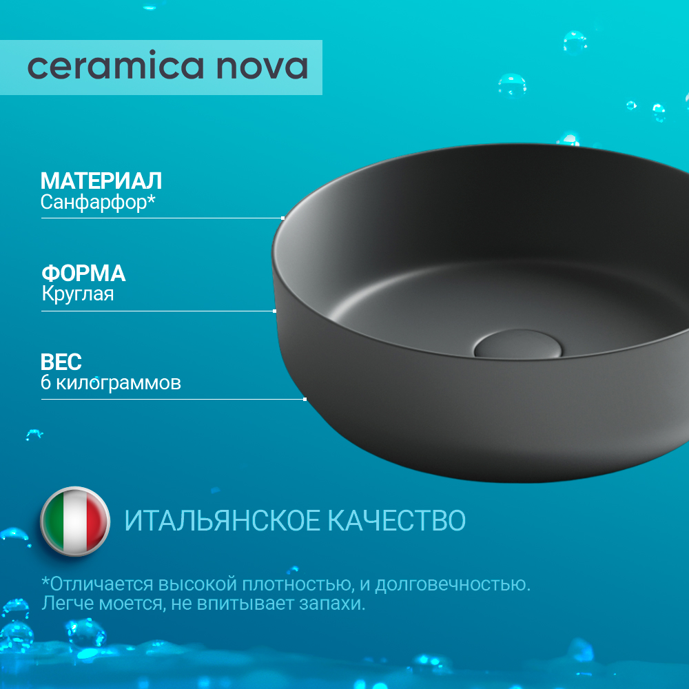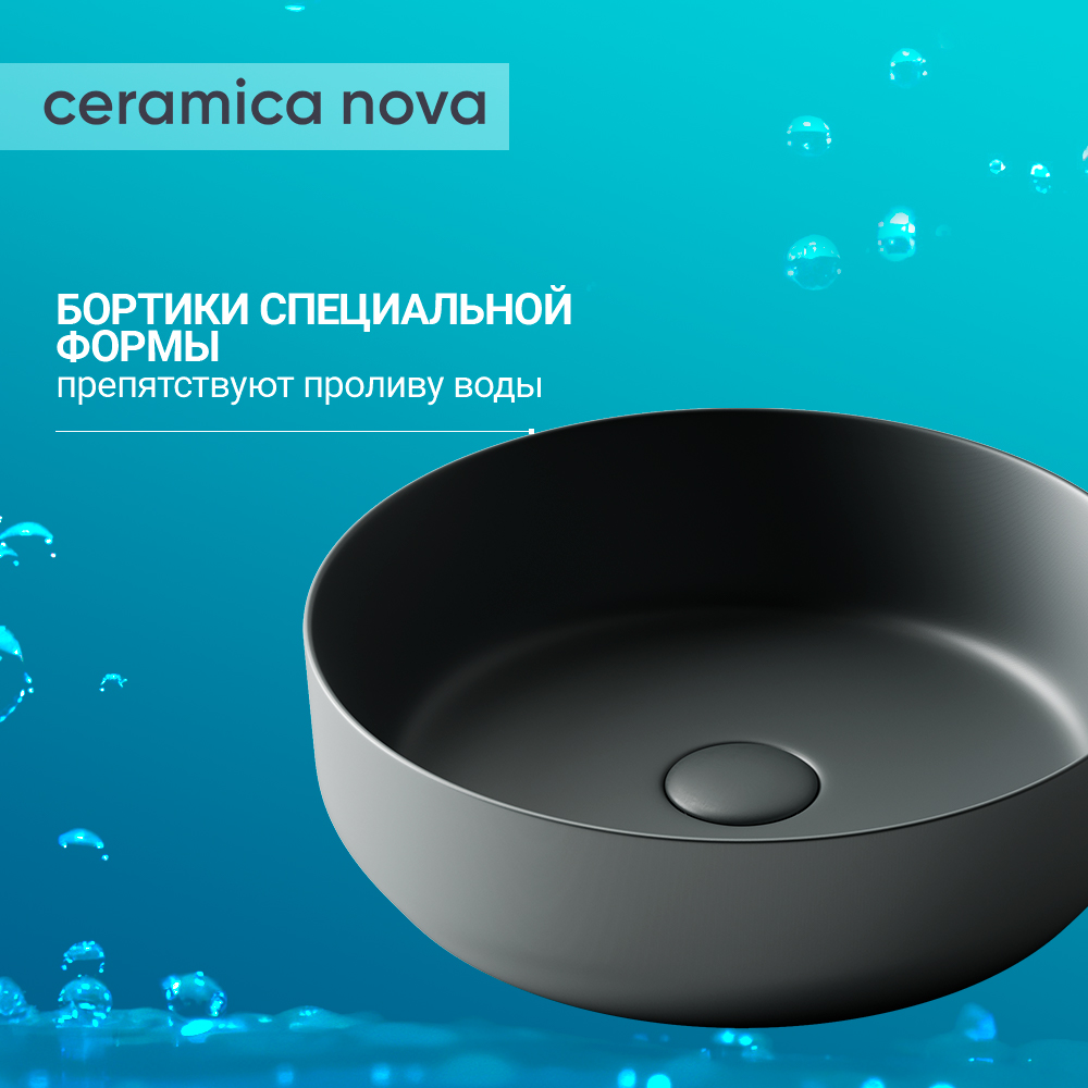 СохранитьCeramica Nova Умывальник чаша накладная круглая (цвет Темный Антрацит Матовый) Element 390*390*120мм интересное: