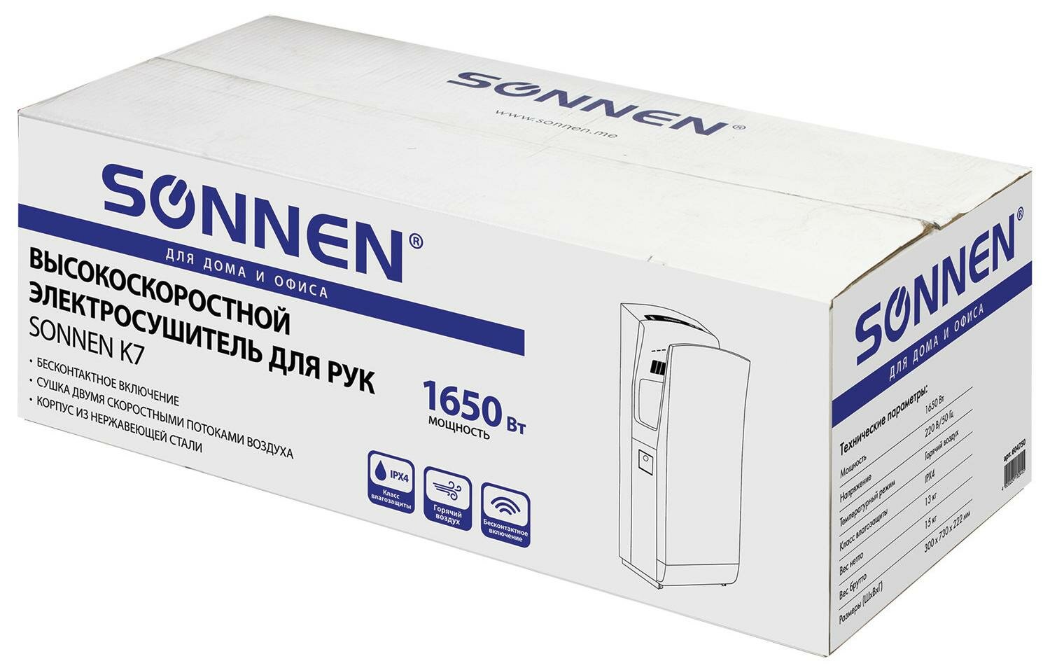 Купить Sonnen Сушилка для рук K7, 1650 Вт, время сушки 10 секунд, нержавеющая сталь, 604750 .
