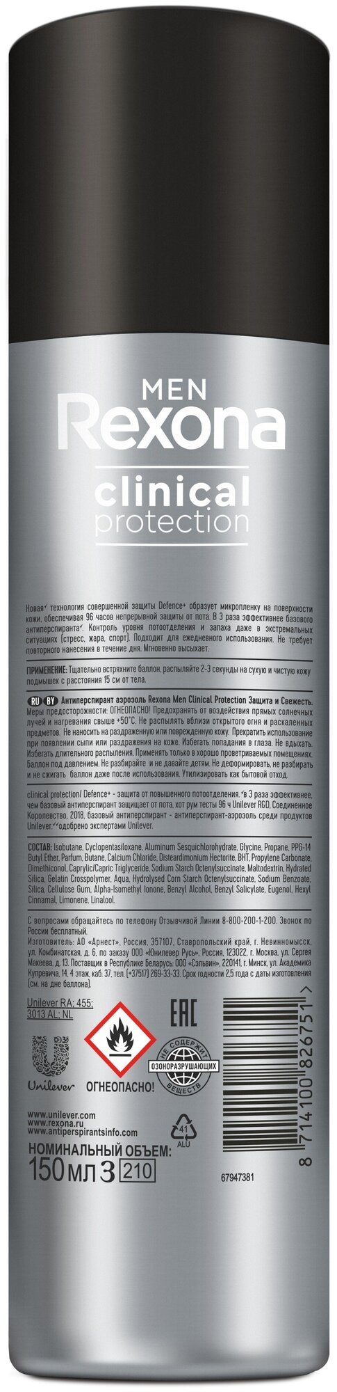 Антиперспирант аэрозоль REXONA Men Clinical Protection Защита и Свежесть, 150 мл