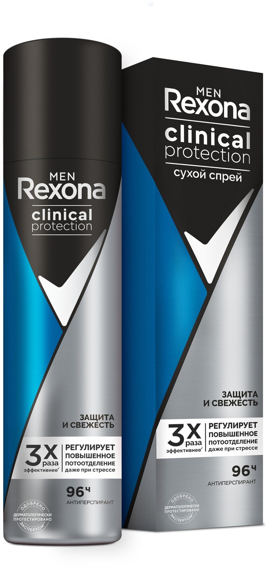 Купить Rexona Men Clinical Protection антиперспирант-дезодорант спрей Защита и Свежесть 150 мл