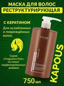 Маска реструктурант Kapous Professional Magic Keratin, для сухих и поврежденных волос, 750 мл