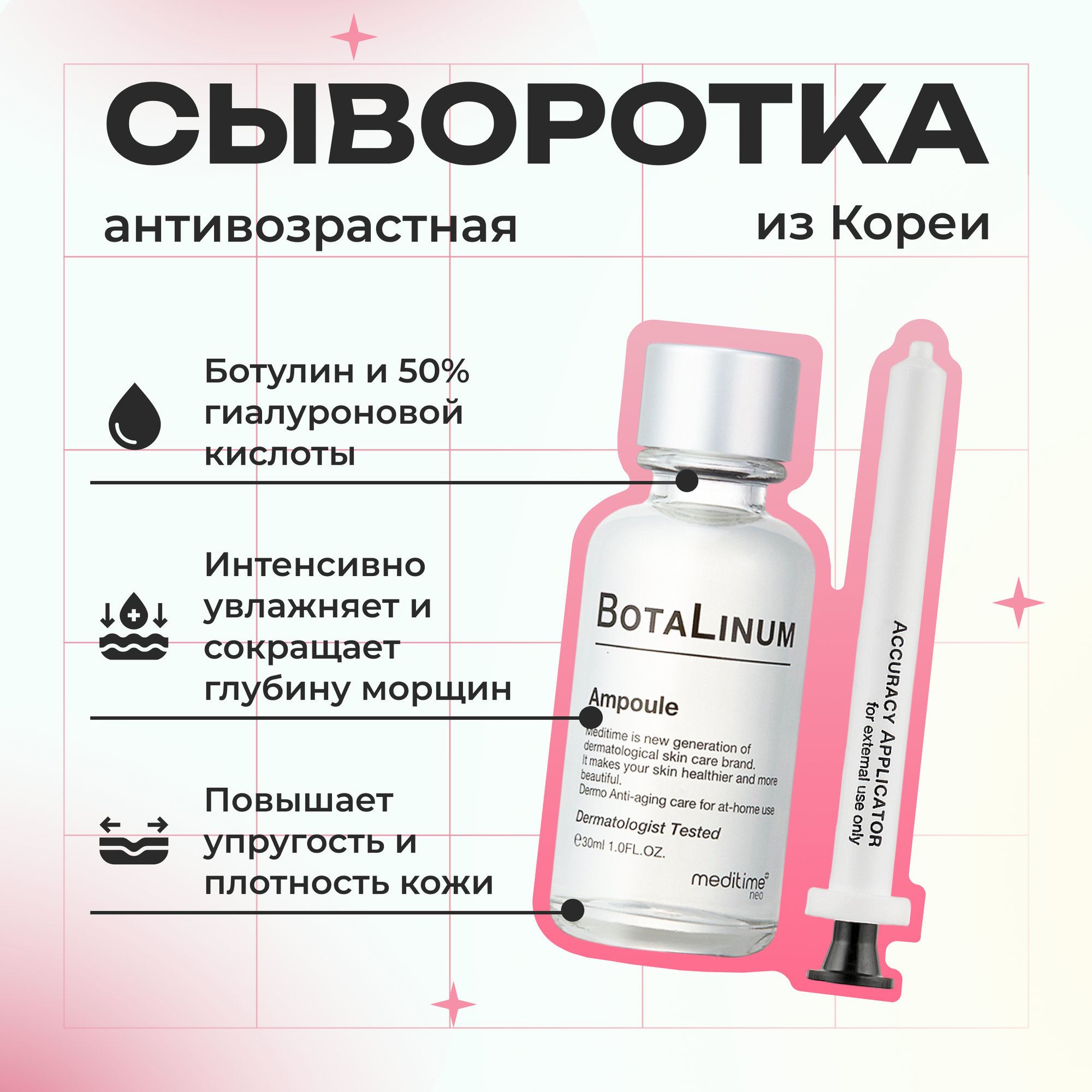 Meditime Антивозрастная сыворотка для лица с эффектом ботокса Meditime NEO Botalinum Ampoule средство от морщин, на основе ботулина, ботокс без укола, омоложение лица, корейская косметика 30мл