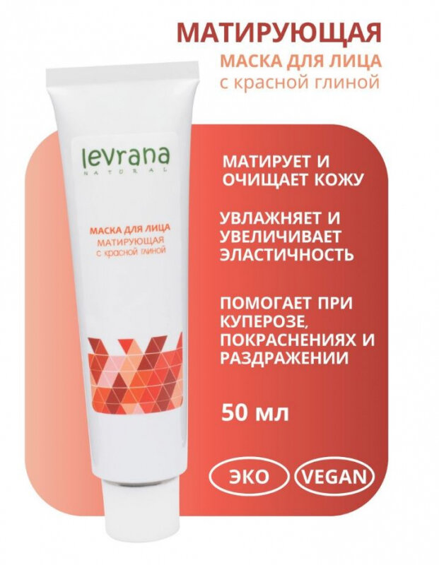 Маска LEVRANA для лица "Матирующая" с красной глиной, 50 мл интересное: