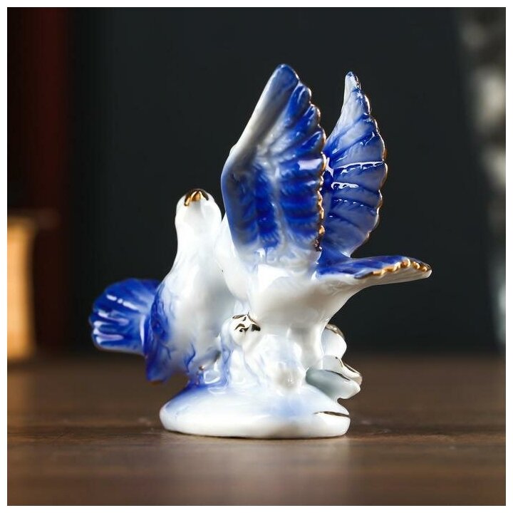 Сувенир керамика "2 голубка с розой, синие" со стразами 6,7х9,2х3 см интересное: