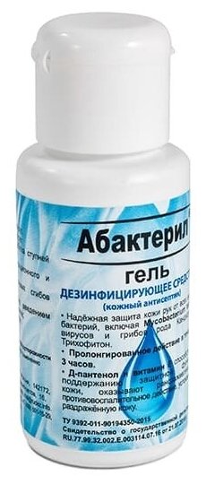 Сохранить7 шт. Кожный антисептик с вирулицидной активностью ГОСТ 12.1.007-76 Абактерил-гель 50 мл флип-топ интересное: